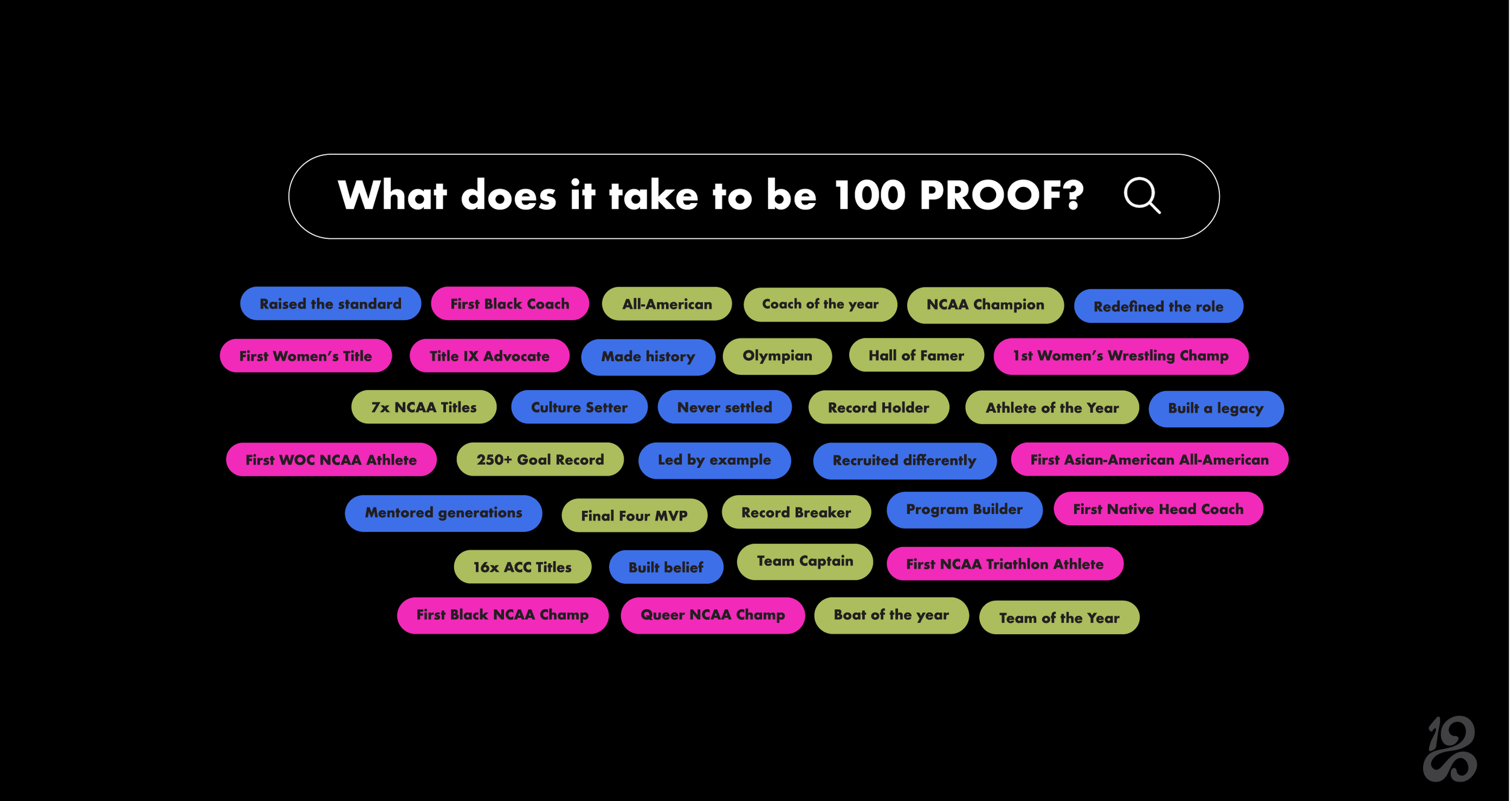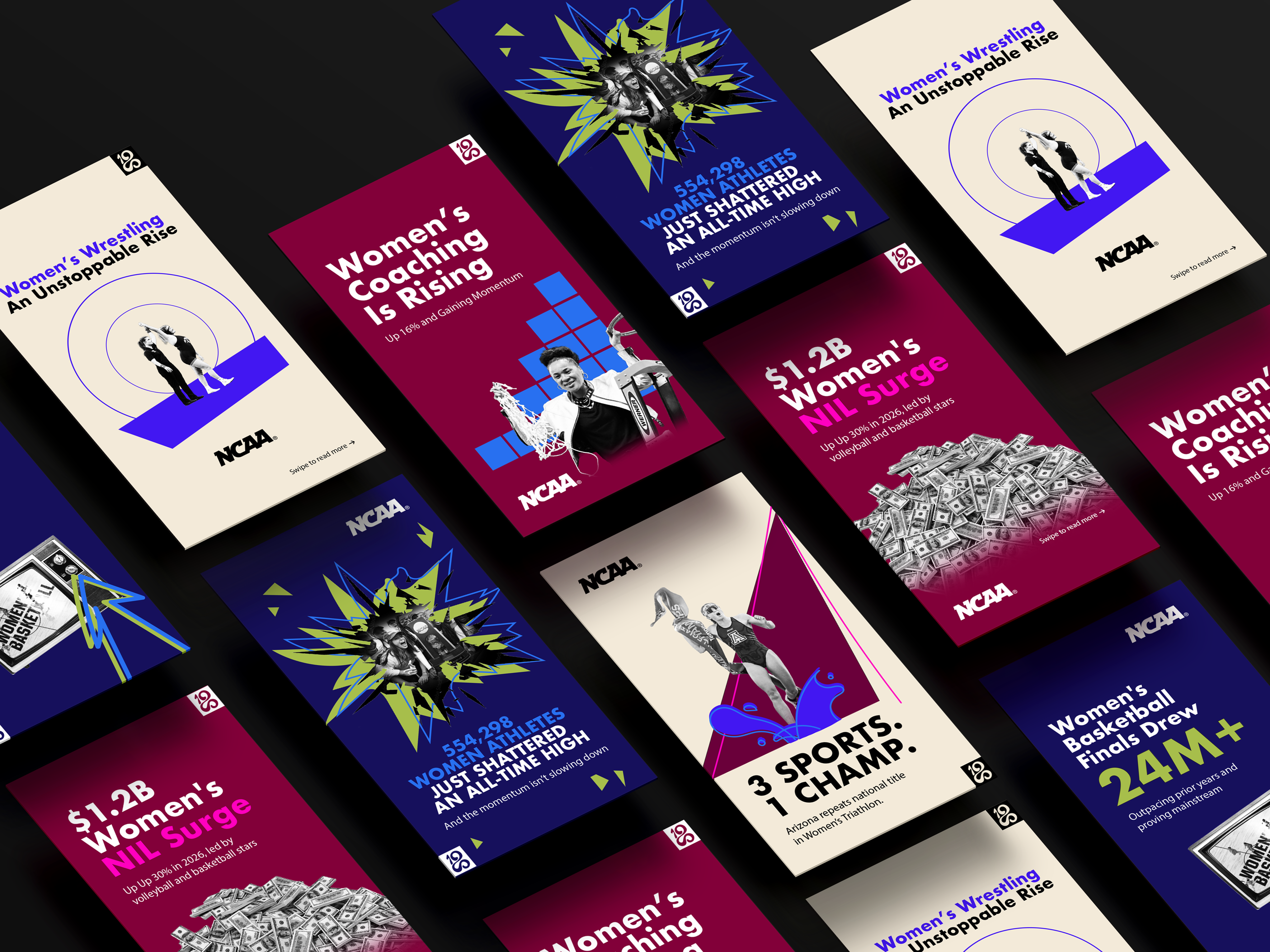 Develop the name and visual identity for a new annual NCAA event celebrating women who are shaping the past, present, and future of collegiate sports. It needs to capture the drive that defines women’s athletics right now.