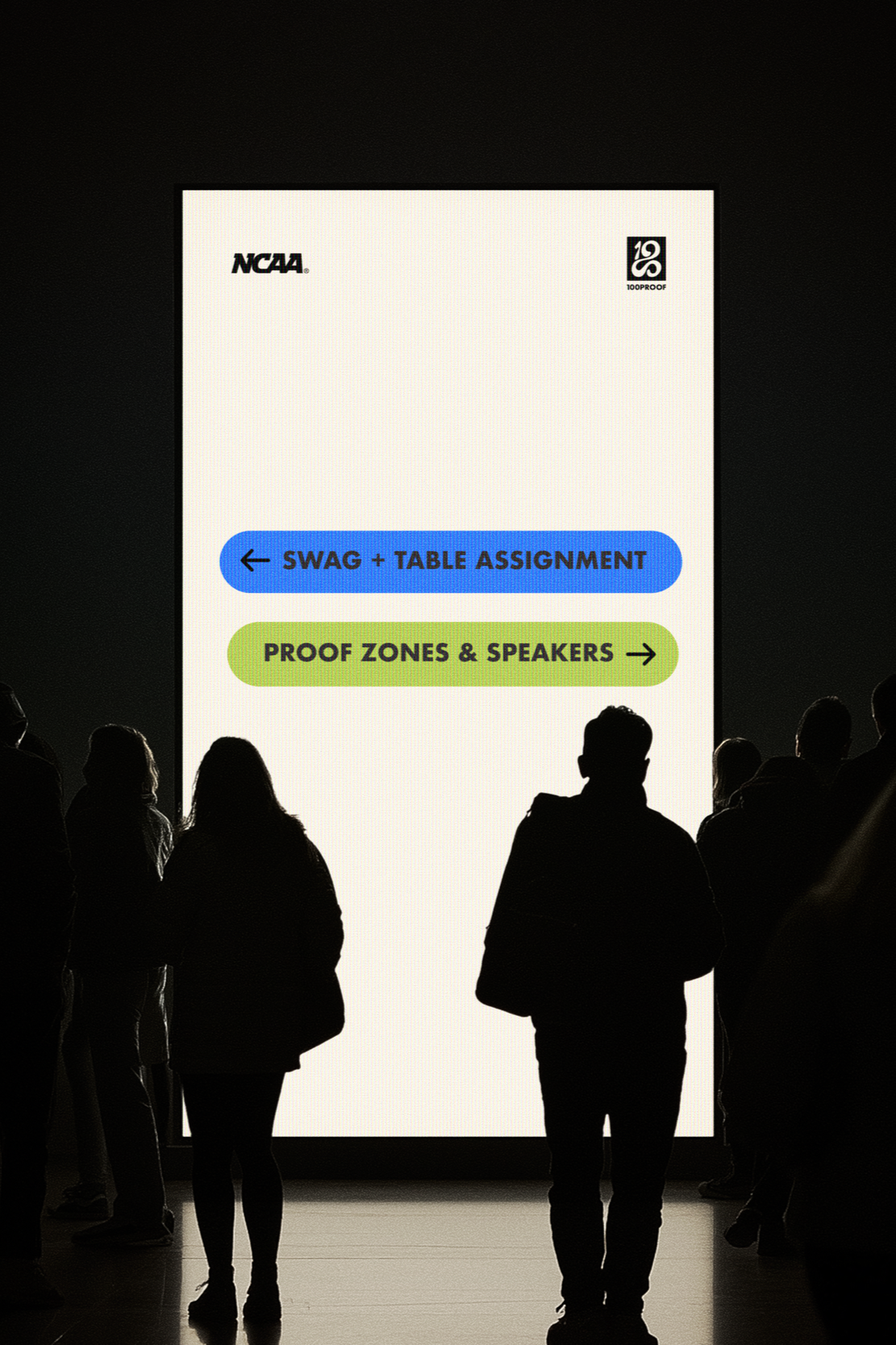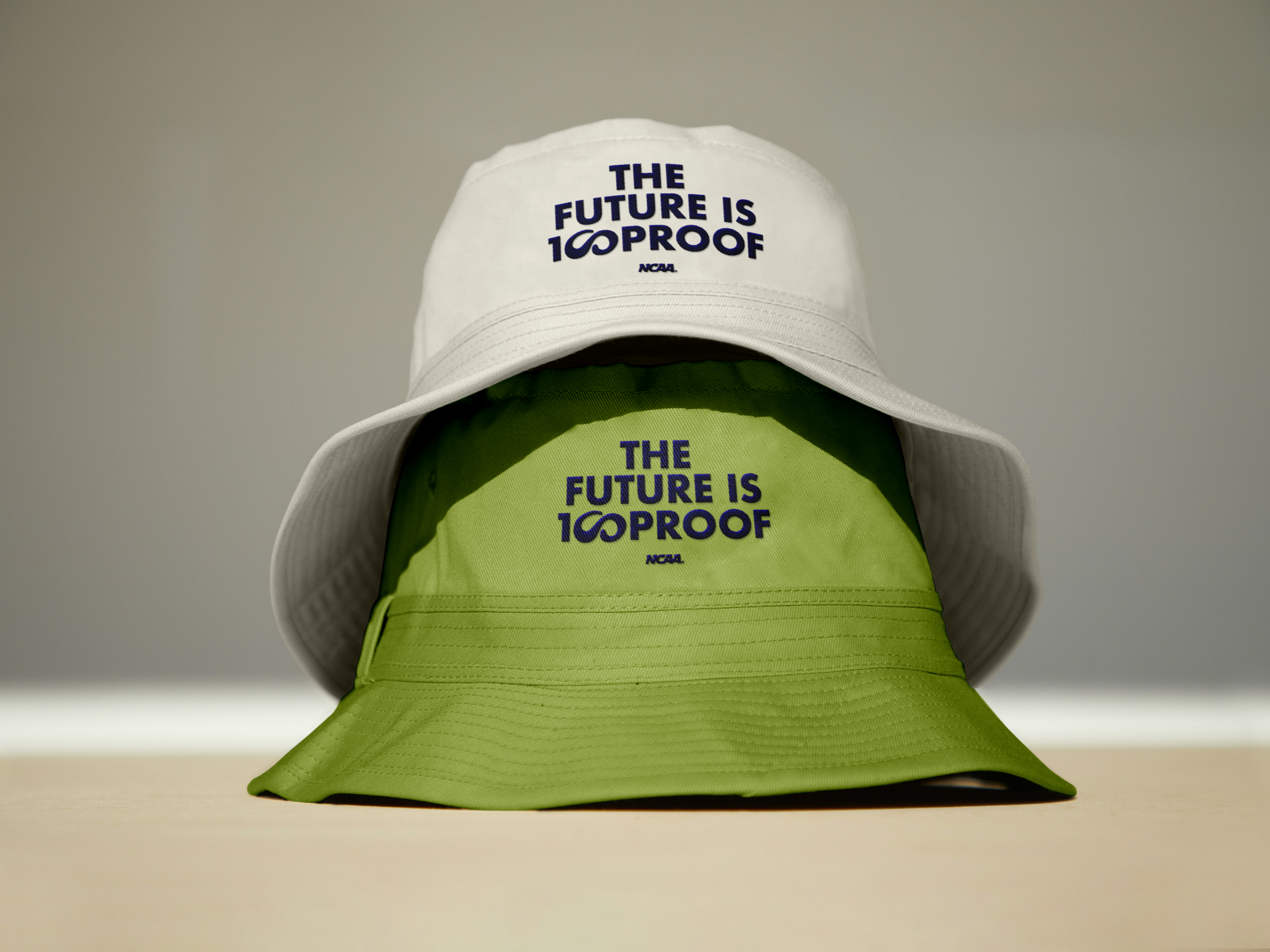 I started with the name, then started sketching logo ideas combining the "100" and "P" into one mark. I picked a feminine yet strong typeface and reshaped it into more of a symbol, since this event stands for something bigger. It works solo but I wanted it to pair well with the NCAA logo too.